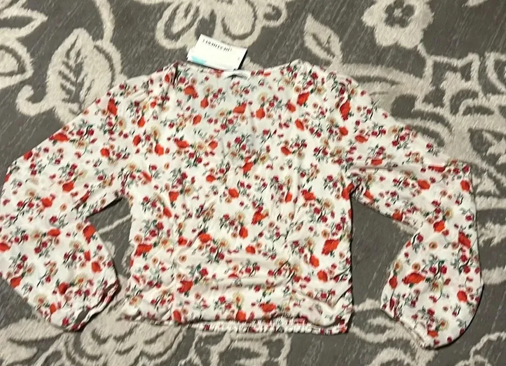 Heatherly blouse. Crop top. Long sleeve. Sheer. Super soft. Dressy or casual. White Size L - $23 New With Tags - From Susan