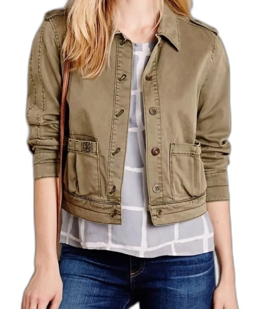 Hei Hei Anthropologie Military Cropped Utility Jacket Women’s Size Small Petite Taupe Green In goo... Show more