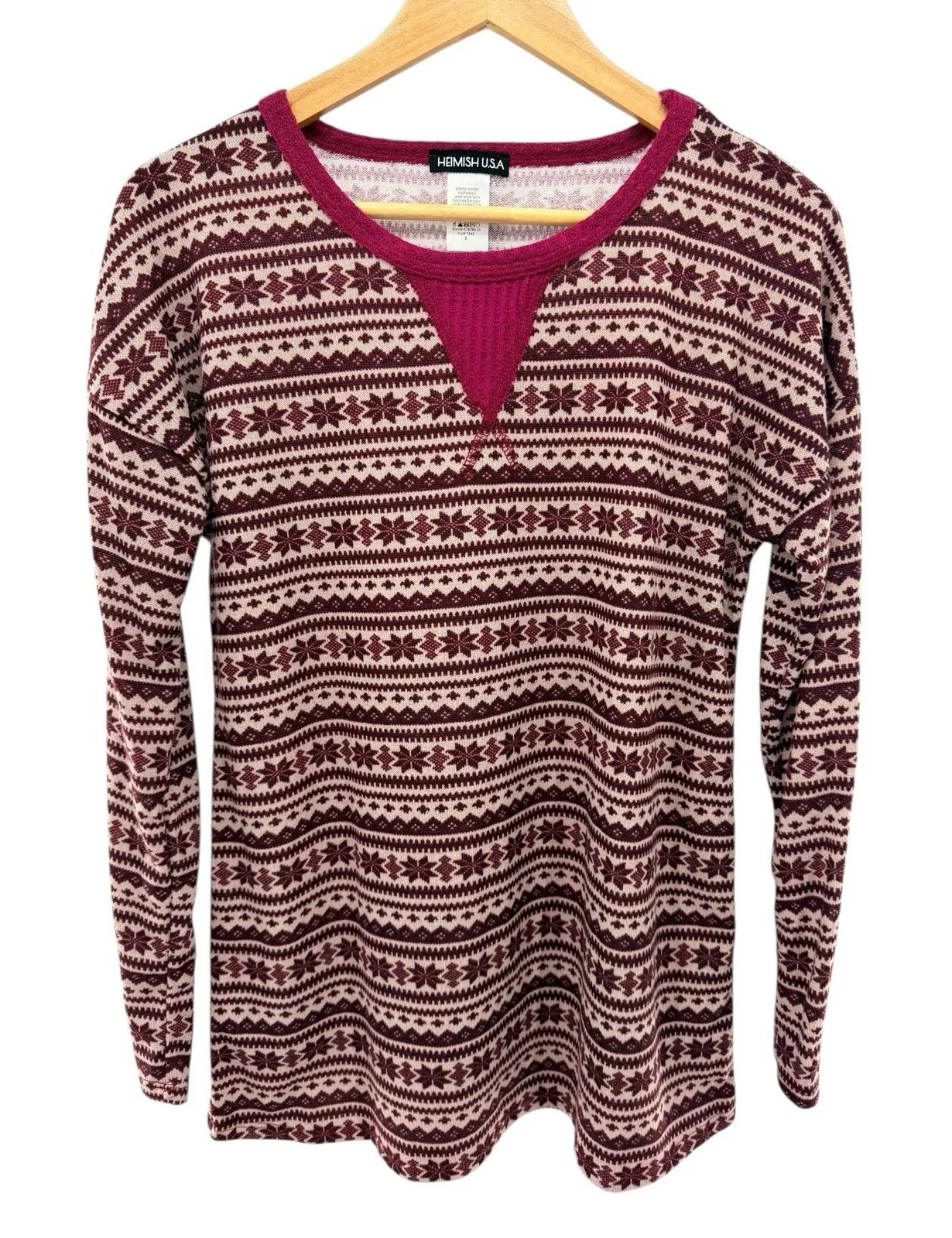 Heimish USA Fair Isle Thermal Top Sz S Burgundy Pink Long Sleeve Knit Shirt NWOT - $15 - From Paula