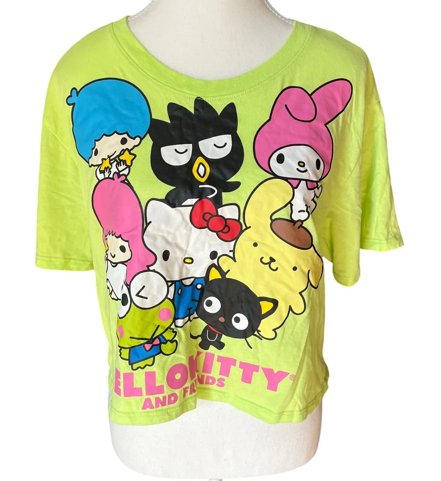 Hello Kitty and Friends Crop Top T-Shirt Sanrio Y2K Kawaii Tee Womens L Size Large Preowned/gently... Show more