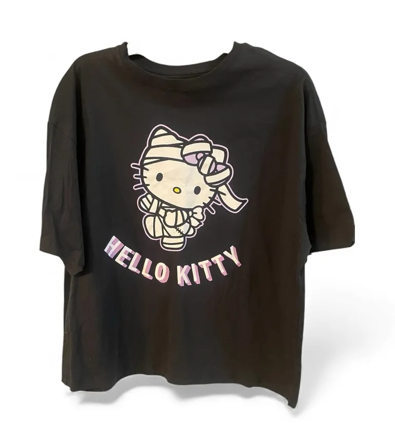 Charming Hello Kitty design on a black tee. Features pastel graphics for a playful look. Adorable b... Show more