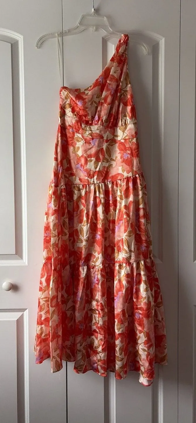 The Hello Molly One Shoulder Floral Dress in Women's Size 4 is a stunning pink chiffon dress with a... Show more