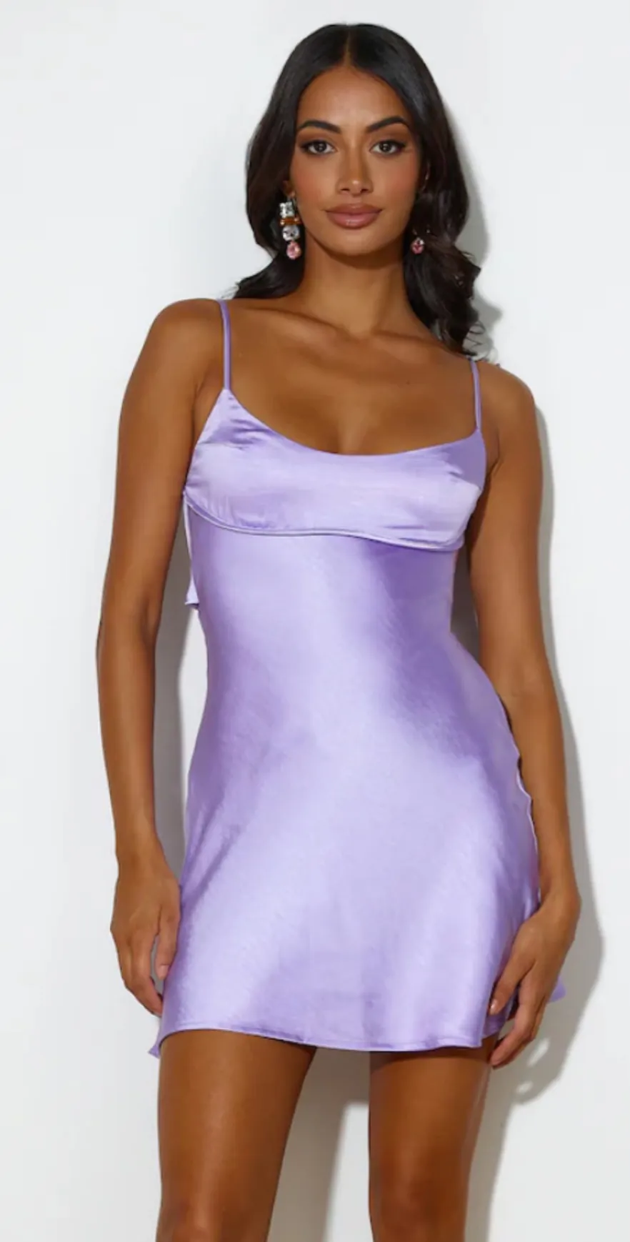 A flowy, silky dress that is super flattering and a beautiful periwinkle color!