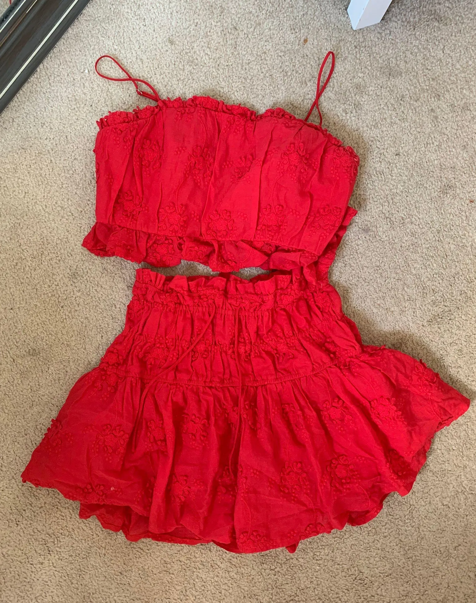 Mine is red and looks exactly like the model!! i just never wear it, such a cute set:) new without t... Show more
