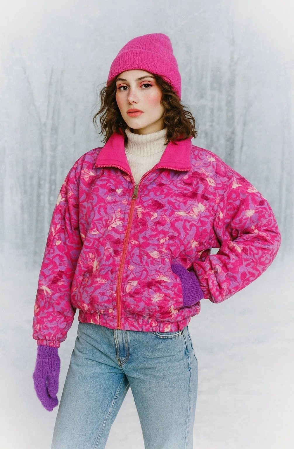 Vintage 90s Hansen pink sea life‎ floral bomber jacket size large women Norway Purple - $39 - From Snob