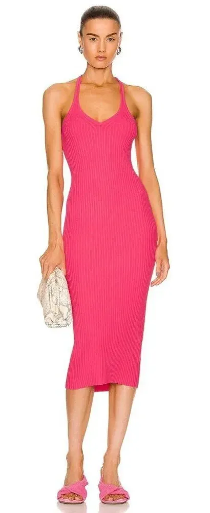 HELMUT LANG Ribbed-knit halterneck midi dress Helmut Lang masters the art of designs that can easily be dressed up or down like this midi dress. It’s rib-knitted to a figure-hugging fit with a halterneck and racerback cut. Pull-on styling Rib knit fabric Unlined Dry clean only 83% viscose, 17% poly Our Style No. HLAN-WD237 Manufacturer Style No. M02HW703 Color: Rose MSRP: $295.00 Features: • Totally Sold out! Size: Womens L Condition: New With Tags With partial tag Tags: farfetch, night out, party, event, date night, sexy, bodycon, graduation, mini, cocktail, going out, bright colorful, fancy, wedding guest, sheath, brunch, bachelorette, simone, rush, sorority, designer, luxury, high end, runway