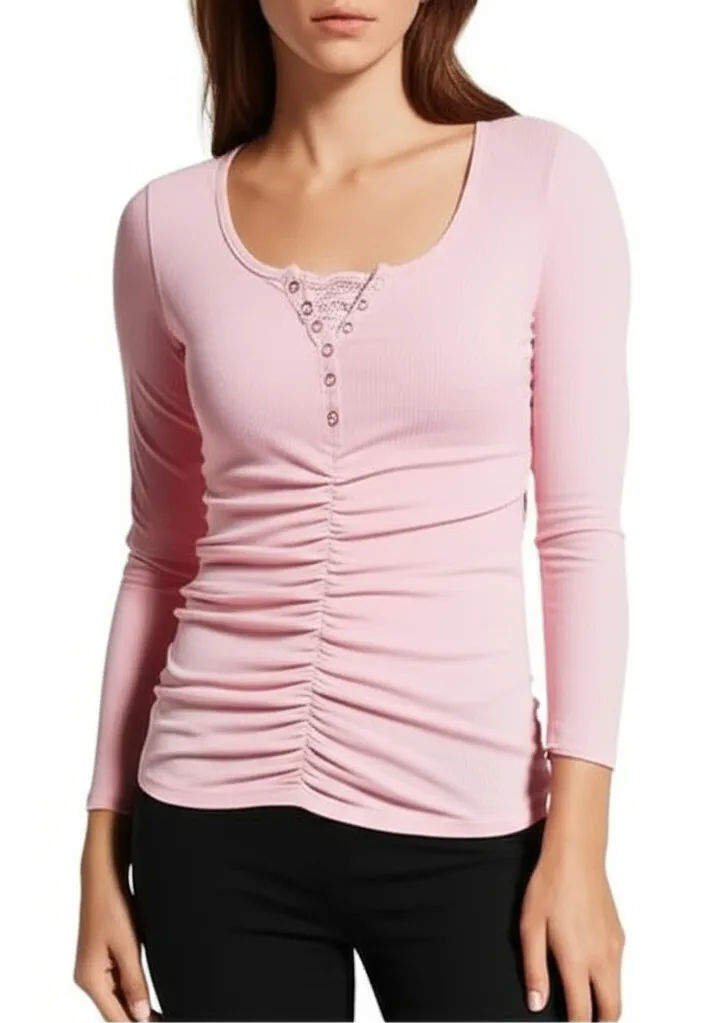 Henley Shirt Womens Size XL Light Pink Ribbed Knit Lace Trim Casual Chic Soft Girl Condition: Good condition. Size: XL Material: 94% Polyester, 6% Elastane Features: Long sleeve, Ribbed knit fabric, Button placket, Lace trim detail Measurements: See pictures. Tags: polyester, elastane, long sleeve, square neck, button placket, relaxed, everyday, layering, feminine, delicate, comfortable, cozy