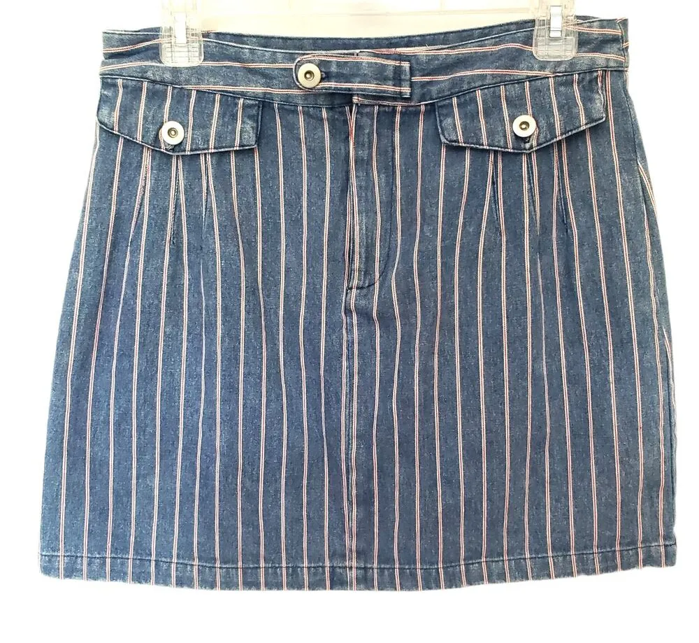 Red, white & Denim Blue Her Entire Name Says Grace Striped Skirt 2 faux placket pockets on front But... Show more