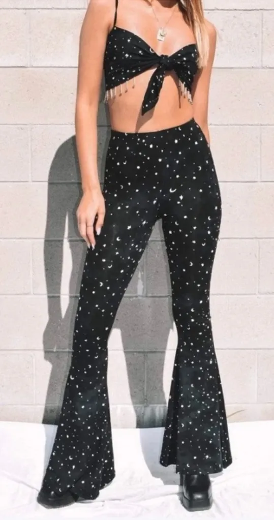 Her Pony The Label Women’s Bell Bottoms Festival Leggings Stars -Size AU 6 / US 2 -celestial stars moons pants -dramatic wide bell bottoms -100% rayon In gently used excellent pre owned condition. Please see all photos of condition. From a smoke free home. Be sure to follow my shop! 🌵 I post new items daily and offer bundle pricing! I have a lot of items of the same size, so check out my closet to bundle & save! The discount is activated when you bundle 2+ items with a shipping discount 💓 Athletic, exercise, pilates, yoga, running, cycling, fall, winter, summer, spring, bike, biker, biking, autumn, boho bohemian athlete bottom flare stars moons festival event party music Coachella pants Australian brand AU soft