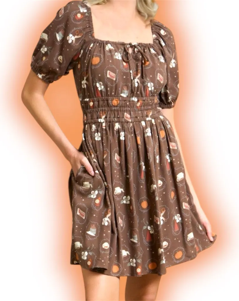 Cartoon Network Over the Garden Wall Floral Icons Allover Print Smock Dress Brown Size XL - $135 New With Tags - From Joanna