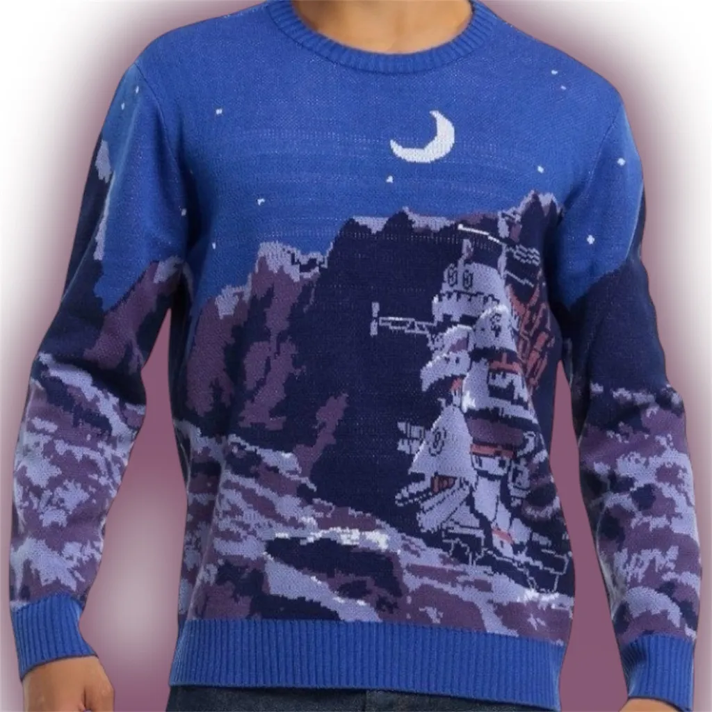 Studio Ghibli Howl's Moving Castle Night Scene Intarsia Sweater Blue Size L - $135 New With Tags - From Joanna