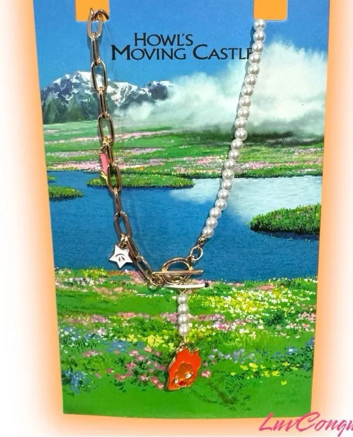 Studio Ghibli Howl's Moving Castle Pearl & Chain Calcifer Floral Necklace Orange - $41 New With Tags - From Joanna