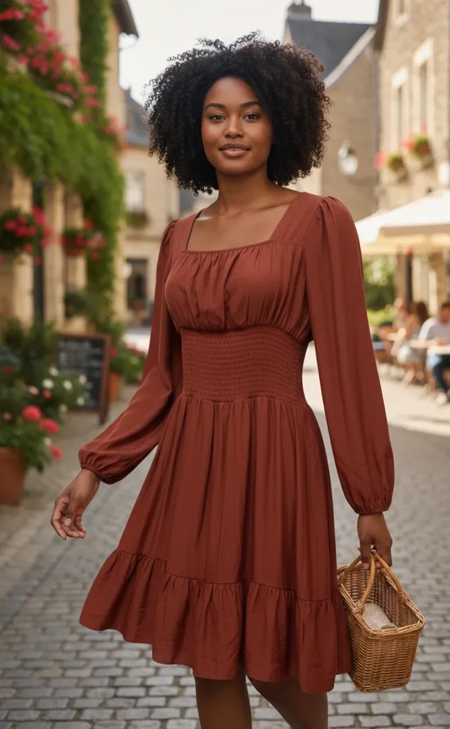 New without Tags Size XL Puff Sleeves Smocked Waist Beautiful Red/ Orange Fall Color Lined Knee leng... Show more