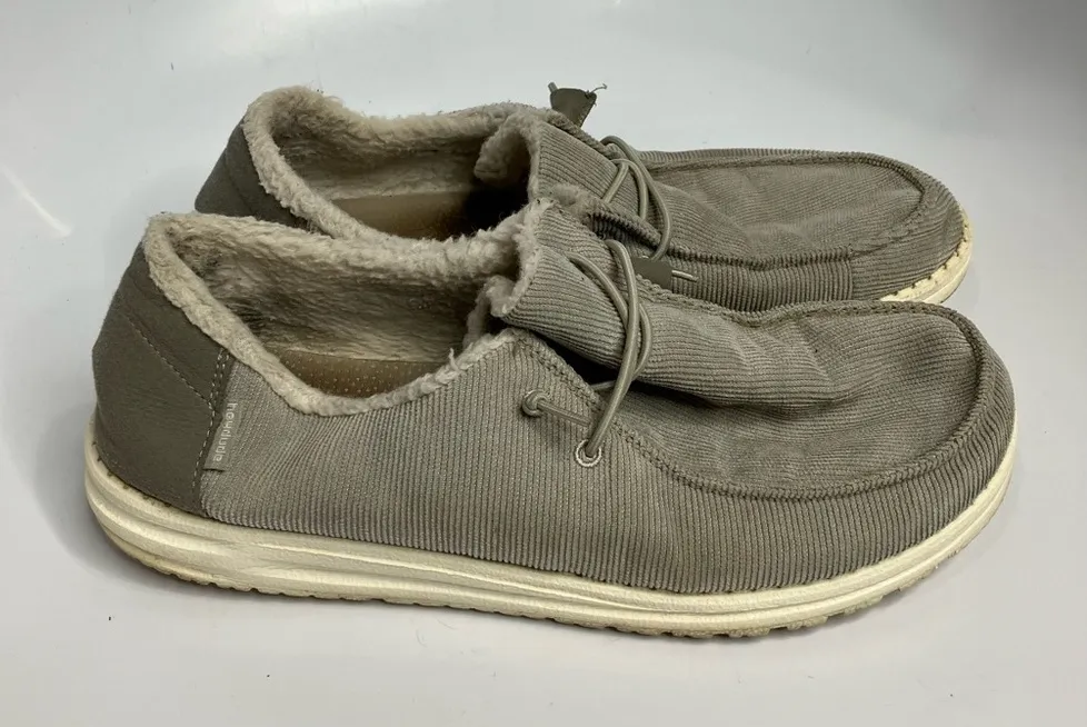 Hey Dude Wendy loafers in gray corduroy size 10 Good preowned condition! One lace end covering is m... Show more