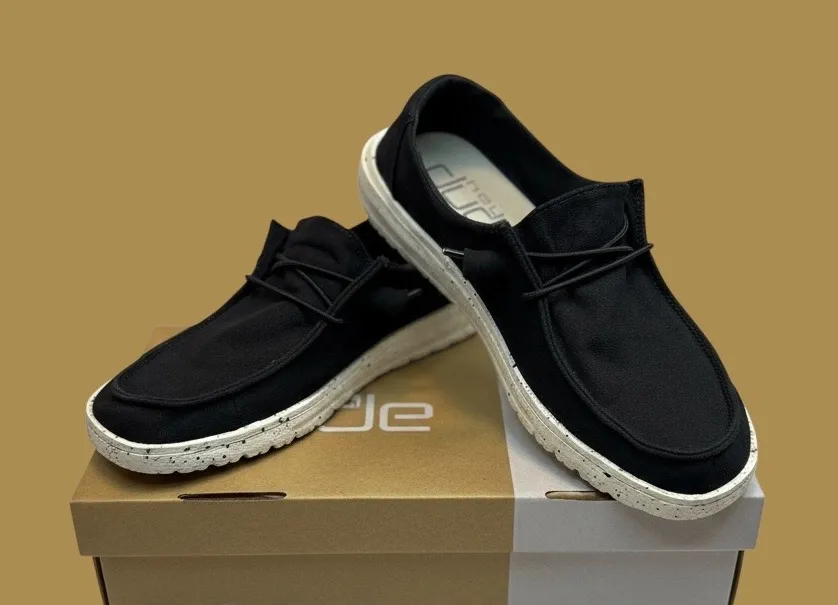 Step into effortless comfort with these versatile Hey Dude Wendy loafers. Crafted from breathable black canvas, these slip-on shoes offer a relaxed fit and easy wearability. The signature lightweight Flex & Fold technology ensures all-day comfort, while the speckled white sole adds a subtle touch of style. Perfect for casual outings, running errands, or relaxed weekend adventures. Style: Slip-On Department: Unisex Adults Type: Casual Upper Material: Fabric AU Shoe Size: 7 UK Shoe Size: 5 EU Shoe Size: 38 Lining Material: Fabric Insole Material: Fabric Pattern: Flecked Outsole Material: Rubber Closure: Slip On Shoe Width: Standard Features: Cushioned, Breathable Model: Wendy L Keywords: Hey Dude, Wendy, canvas, slip on, loafers, black, comfortable, casual, lightweight, everyday, travel, weekend, athleisure 2026