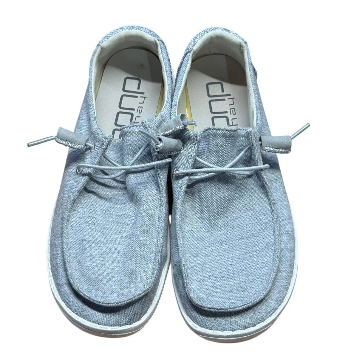 Hey Dude Wendy loafer shoes in a light gray stretch fleece fabric. Small marks are present on the heel fabric as noted in photos. Size 7 Good Pre-Owned Condition *any flaws will be noted above* ***Please make reasonable offers with the "offer" button (I won't negotiate in comments, no transactions offsite, no trades)**** • All items come from a smoke-free home. • Please compare the measurements to something you already own. Keywords: Hey Dude shoes, Wendy loafer, light gray shoes, women's slip-ons, stretch fleece, comfortable, flexible sole, casual shoes, everyday wear, textured heel, easy on off, athleisure