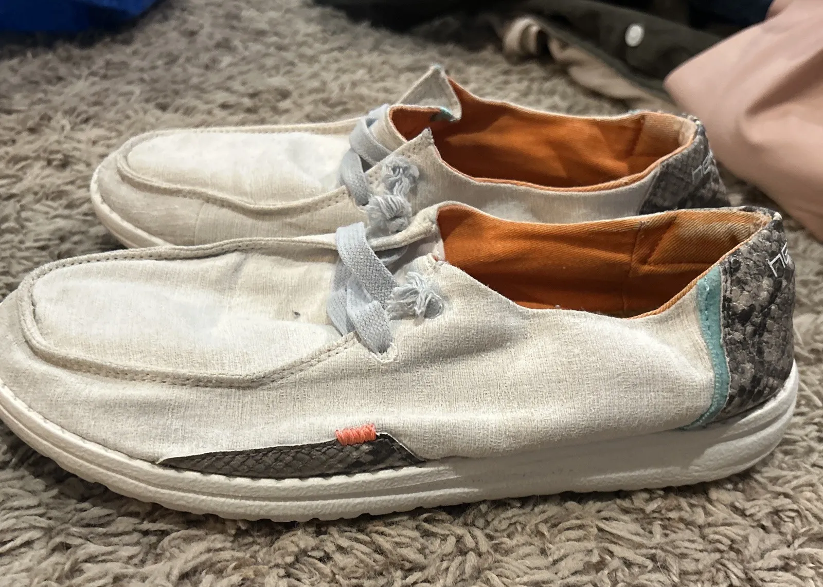 Hey Dude Women's Size 7 Wendy Snake Linen White Cotton Canvas Slip On Shoes These slip on shoes are in good condition. Please see all photos before purchasing. Thanks so much for looking!
