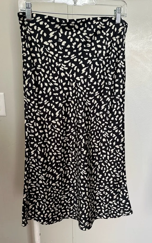 Excellent condition Silky satin feel Dalmatian print - spotted - polka dots - cheetah print Elastic waistband - high waisted Fall, spring, summer, modest, preppy, business casual, office, feminine, dainty, lightweight - Quick shipping! - Open to offers! - Measurements provided by request!