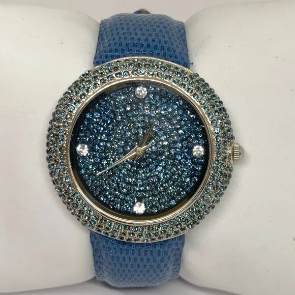 Sigal women’s quartz analog watch blue crystals dial bezel 39mm silver tone runs - $12 (80% Off Retail) - From Watch