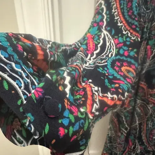 Very fun navy dress with a bright floral pattern. Balloon sleeves with elastic hems. Anthropologie... Show more