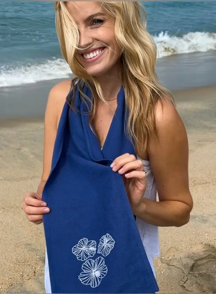 HIBISCUS SCARF -TAG ALOHA CO. (Beachly Exclusive) Embroidered Hibiscus Scarf NWT Blue - $28 New With Tags - From Rosanna