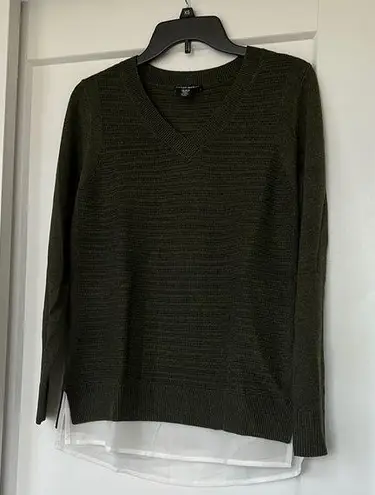 Olive V-Neck Sweater with Layered Hem Green Size XS - $35 New With Tags - From Emi