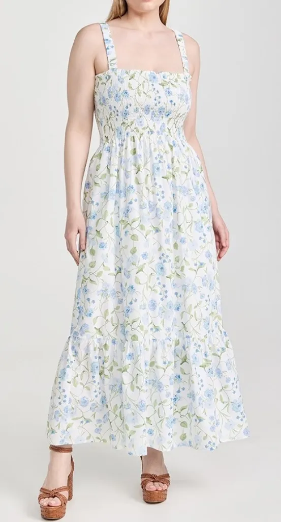 Hill House Home Floral Smocked Anjuli Nap Maxi Dress White 200$ xs fall NWOT - $165 - From Madi