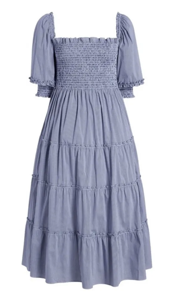 Hill House Home Nesli sleeved midi tiered nap dress navy blue micro gingham XS - $130 - From Keahida