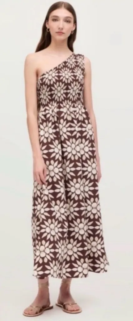 Hill House Home Thea Chocolate Brown Floral Shell One-Shoulder Dress | S - $110 - From Carolyn