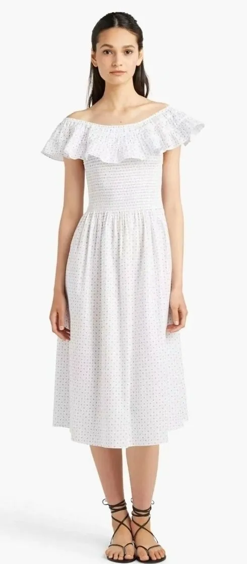 The Akilah is an A-line Nap Dress with elasticated smocking, a midi skirt and dramatic ruffle wrap-around collar. The versatile neckline can be worn 2 ways - on the shoulder or off the shoulder Ruffle neck Smocked bodice This is so much more than a polka dot dress. This gorgeous paisley print is made in a soft cotton poplin material as part of the mermaid collection