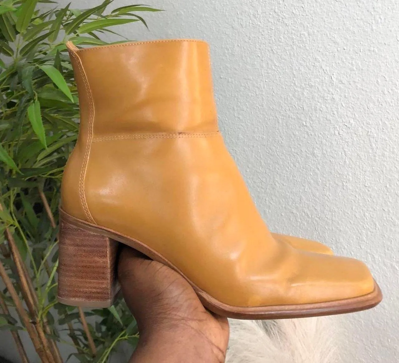 RARE Vintage 90s/2000s Y2K Hillard &Hanson ankle mid calf real genuine leather tan banana cowboy campus style square toe boots-Women 7M Size 7 - $306 - From Victoria