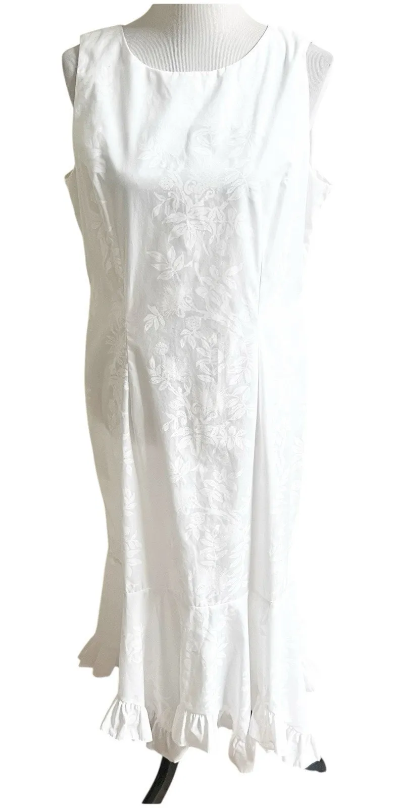This Hilo Hattie Women’s Hawaiian Jaquard Maxi Dress in white, size 18, features a ruffled hem and a... Show more