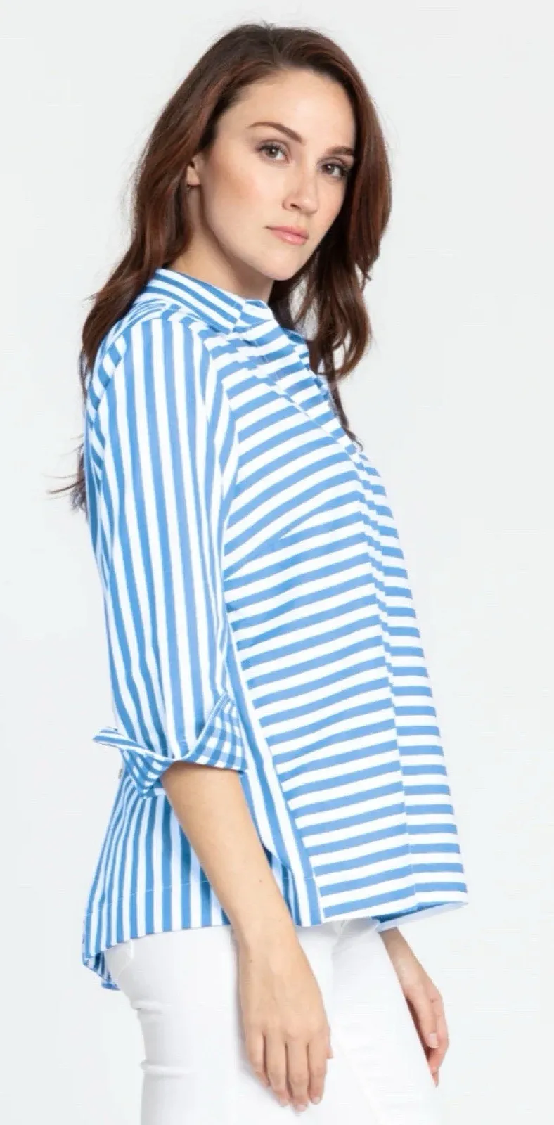 For better fitting please referred to measurement posted on Pictures*** Our fan-favorite Stripe/Gingham program is crafted from 100% cotton, offering a crisp, clean feel with natural breathability. This pure cotton fabric is soft yet structured, giving these shirts a polished look that drapes beautifully while remaining comfortable for all-day wear. With a smooth finish and timeless appeal, this fabric is perfect for creating effortlessly classic styles that are both versatile and refined. An instant classic, Hinson Wu's Xena has gold tone zipper back detail, with matching gold tone buttons under the concealed front placket. Excellent condition * Stretch Polished Cotton * Gold tone zipper back detail, with matching gold tone buttons under the concealed front placket. * 3/4 sleeves with a slit that can flip up for that extra flair. * Slight A-line shape. * Back zipper can be unzipped to have a more trapeze shape, revealing a panel underneath. * Machine wash Tags: Peppy, Designer striped gingham blouse, Upscale cotton top, Sophisticated Stripe blouse, Statement Designer blouse, Old money, Heritage, Stealth wealth, casual chic, Country club, Maximalist style, Designer Back zipper blouse, Cotton blend Designer striped top, career, Smart casual blouse.