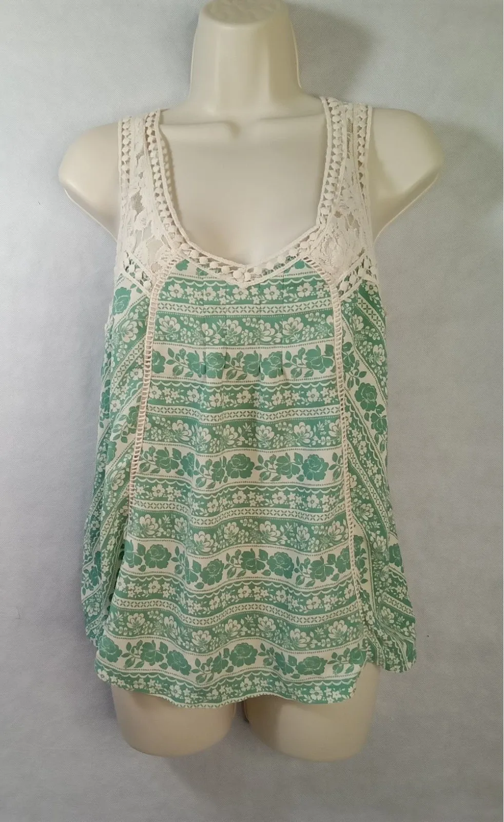 Hint of Mint women medium (juniors) floral lace green and white v neck pleated flare. Tank is made o... Show more