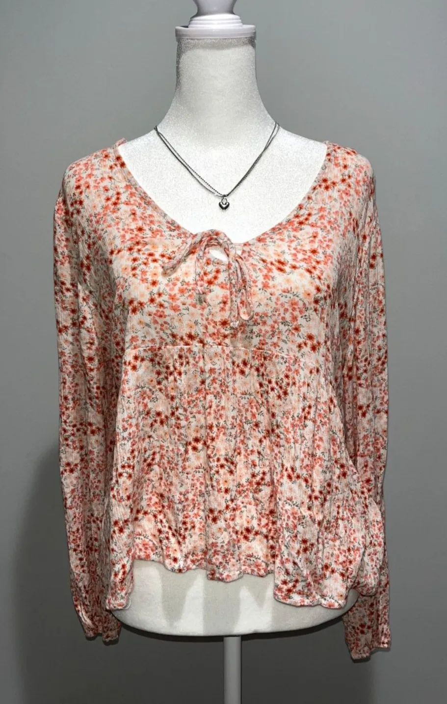 Hippie Rose Floral Babydoll Long Sleeve Top Pink Coral Flowy Boho Women Size XL - $12 - From Sara