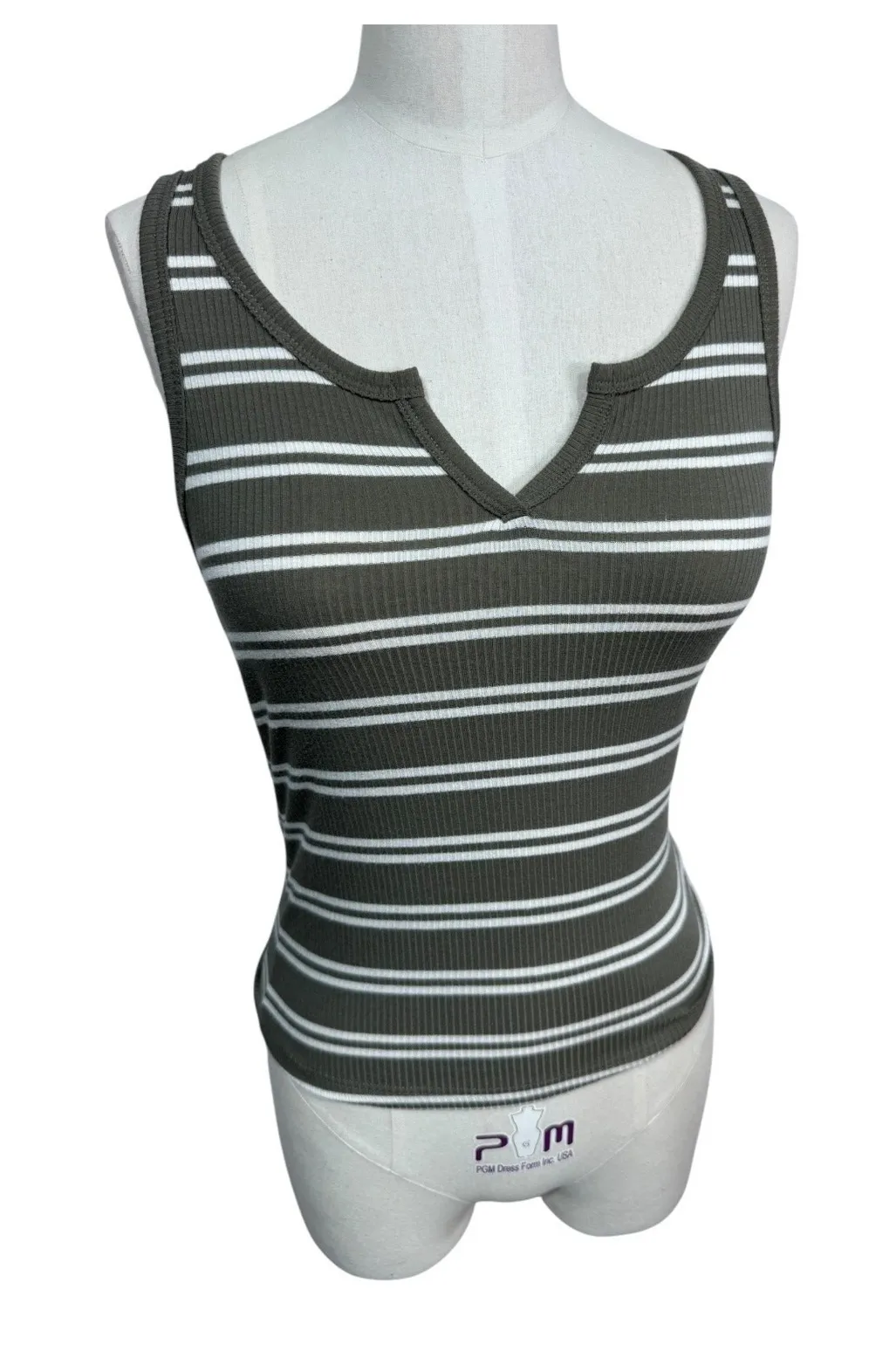 Hippie Rose Green Striped Sleeveless Ribbed Knit Notch V-Neck Tank Top Size S Size: Small Color: Gr... Show more