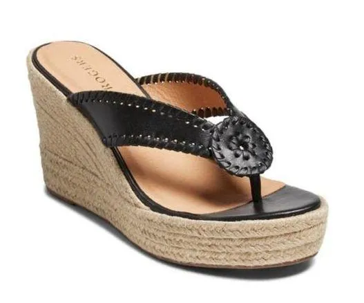 Jack Rogers Rowan Platform Espadrille Leather Wedge Sandal in Black New in box. Size 9 Medium. COL... Show more