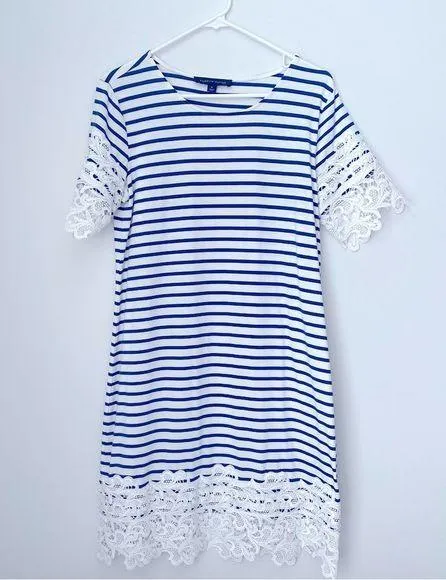 Tommy Hilfiger Striped Blue and White Dress with lace trim Size Medium Condition is used with no... Show more