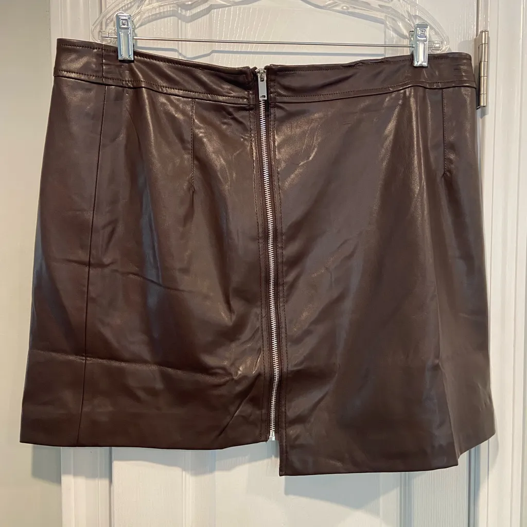 NWT Crissrexo Size XXXL Brown Faux Leather Front Zip Asymmetrical Mini Skirt - $25 New With Tags - From Lindsey