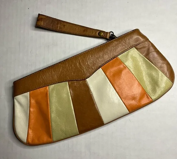 This bag is super cute and in overall good condition. There are signs of wear and the zipper strap could be replaced. Or some TLC may be able to save it. You have places to put your cards and then also a zipper pocket on the inside. That makes it so you can keep change or anything your heart desires. Measurements Width: 9.5-12in Height: 5in