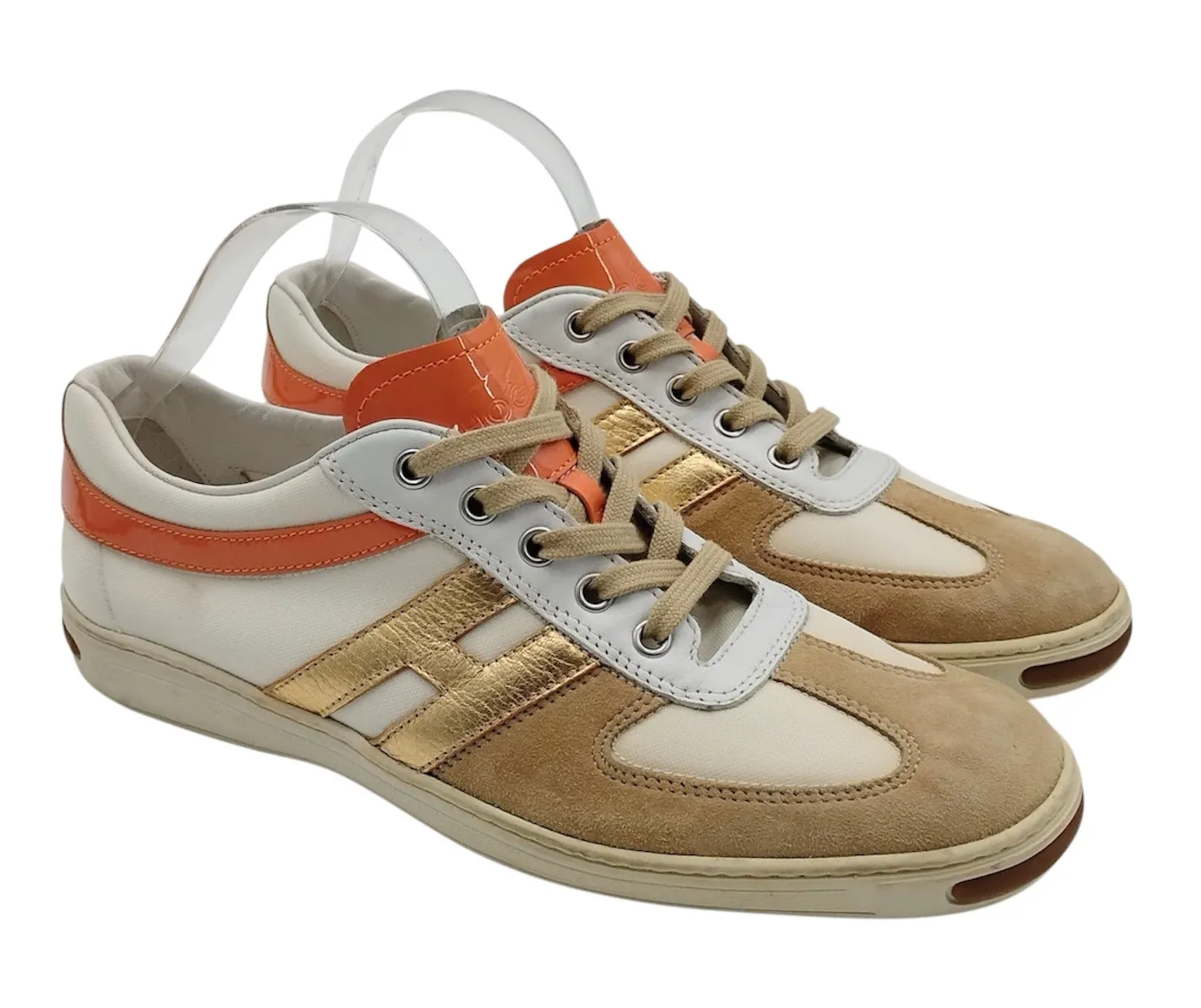 Hogan Womens Size 10 Logo Sneakers Trainers Orange Gold Tan Patent Leather Suede - $91 - From Amanda