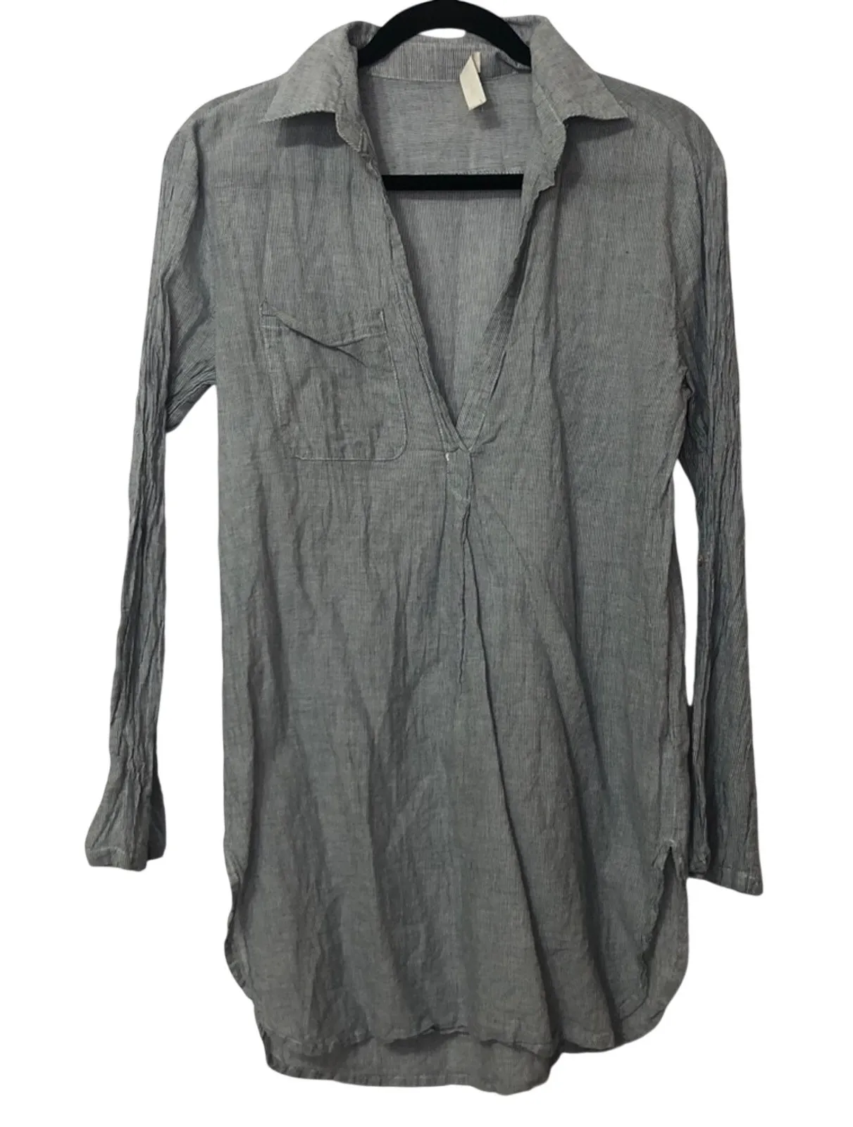 Hoity Toity Grey Striped Long Sleeve Blouse Women S V Neck Beachy Casual Classic Black - $14 - From Lisa