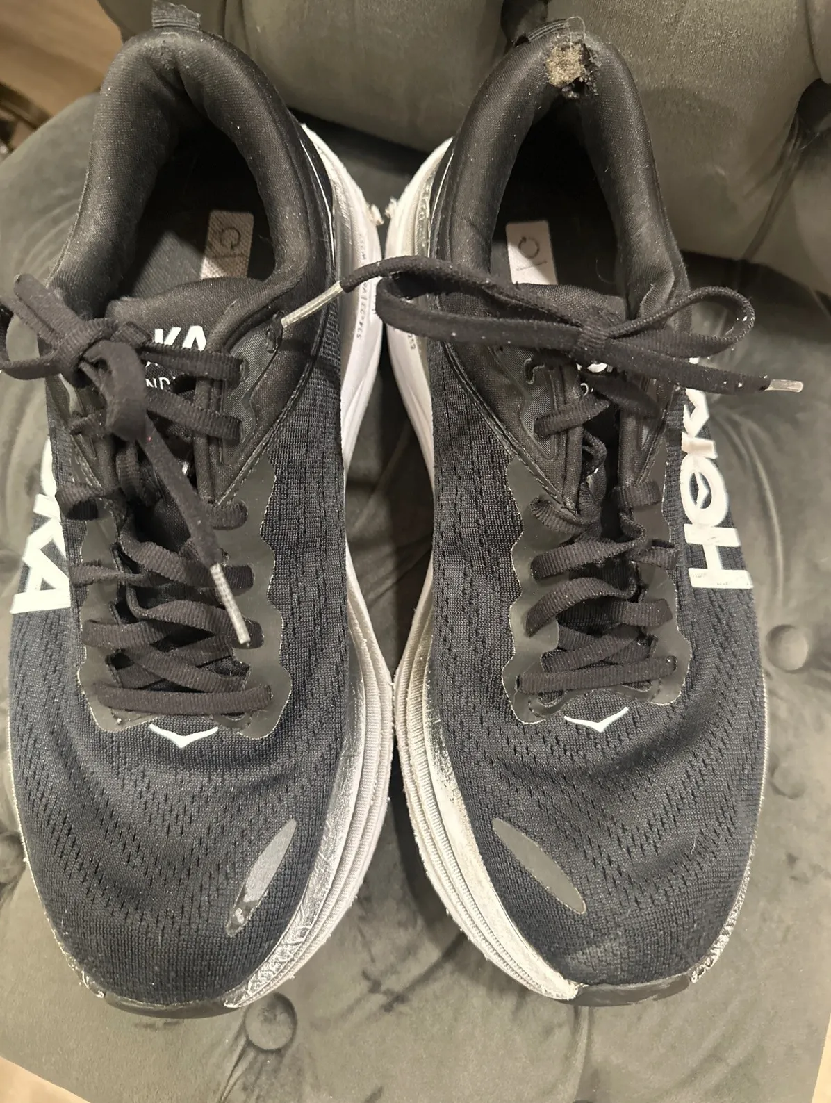 These have some wear see pictures. Experience unparalleled comfort and support with these Hoka Bondi... Show more