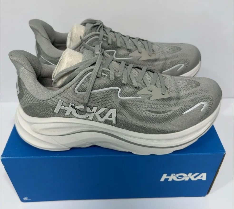 Brand new HOKA ONE ONE Clifton 10 WIDE women’s running shoes in size 12D. Color: Gray (SRYG). Lightweight, cushioned, and designed for comfort and support. New with box Brand: HOKA ONE ONE • Model: Clifton 10 • Style: Running Shoes • Department: Women • Size: 12 • Width: D (Wide) • Color: Gray • Condition: New without box • Upper Material: Mesh / Synthetic • Type: Athletic • US Shoe Size: 12 • Features: Lightweight, Cushioned, Breathable