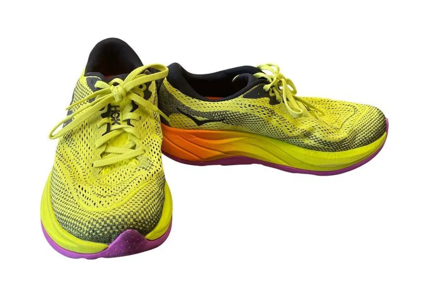 The Hoka One One Rincon 4 offers a lightweight, breathable design for optimal running performance. Engineered for women, its vibrant yellow and black color scheme ensures visibility for serious runners seeking comfort and durability in their footwear. In good condition in and out with no defects noted. SKU 9115 • Size 9B for a precise fit • Vibrant yellow & black design • Lightweight, breathable upper • Durable rubber outsole • Lace-up closure for secure fit No visible flaws or wear. Features: • athletic casua wear Size: Womens 9B Condition: Pre-Owned Good No defects noted. Although we clean our items additional cleaning may be needed such as spot treatments, etc.