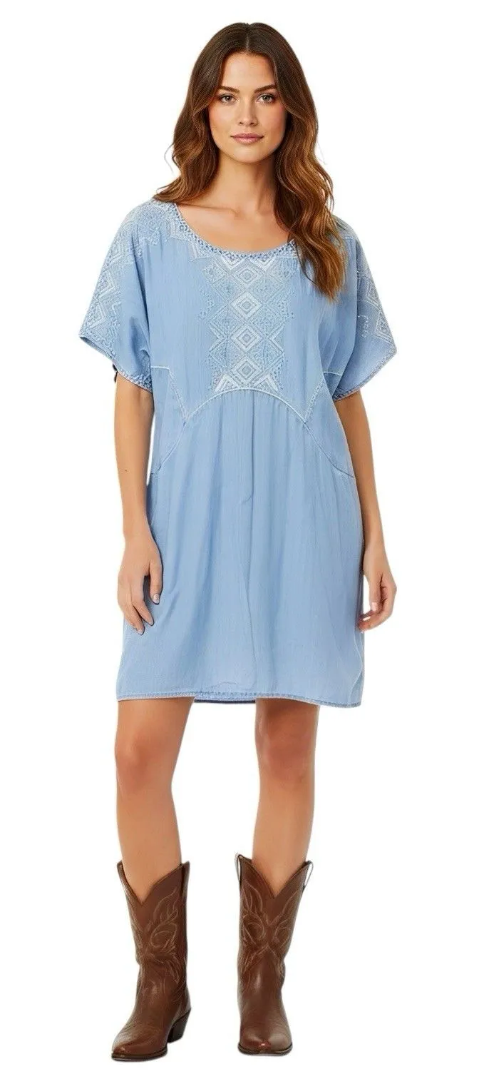 Holding Horses Anthropologie Dress Size Small Chambray Embroidered Southwestern Pullover Side Pock... Show more