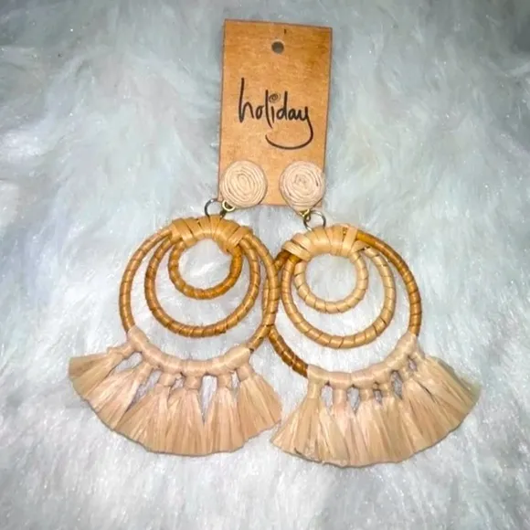 Elevate your style with these chic tan hoop earrings from Anthro “Holiday”. Perfect for the summer.... Show more