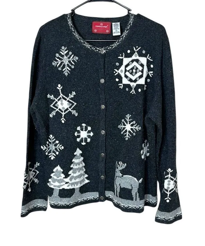 Holiday Lodge by Northcrest Christmas Snowflakes Deer Cardigan Sweater XL. Very good condition. Wool... Show more