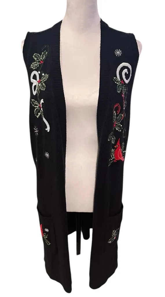 Holiday Time Women's 1X Black Sleeveless Cardigan with Festive Embroidery - $31 - From Elisha