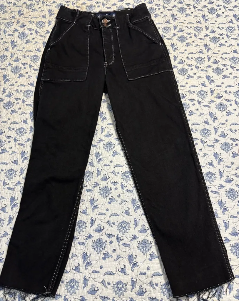 Hollister black jeans Ultra high rise and thrashed distressed hems. Vintage stretch. Size 5R. W27 L2... Show more